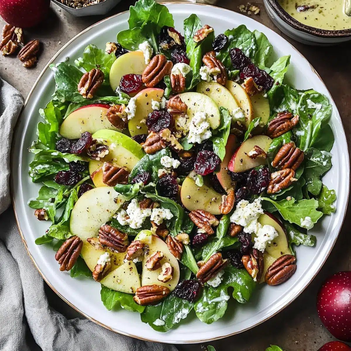 As the vibrant colors of fall unfold, I often find myself craving refreshing salads that celebrate the season’s bounty. This Quick and Easy Apple Cranberry Salad with Maple Dijon Dressing perfectly captures that spirit, combining crunchy honeycrisp apples and tart dried cranberries with the earthy richness of pecans. Within just 20 minutes, you can create a dish that’s not only a feast for the eyes but also a nourishing delight for the taste buds. What I love most is how versatile it is—ideal for both festive gatherings and simple weeknight dinners. Plus, it’s gluten-free and vegetarian, making it a crowd-pleaser for everyone at the table. Want to discover how to elevate your salad game this season? Let’s dive in!