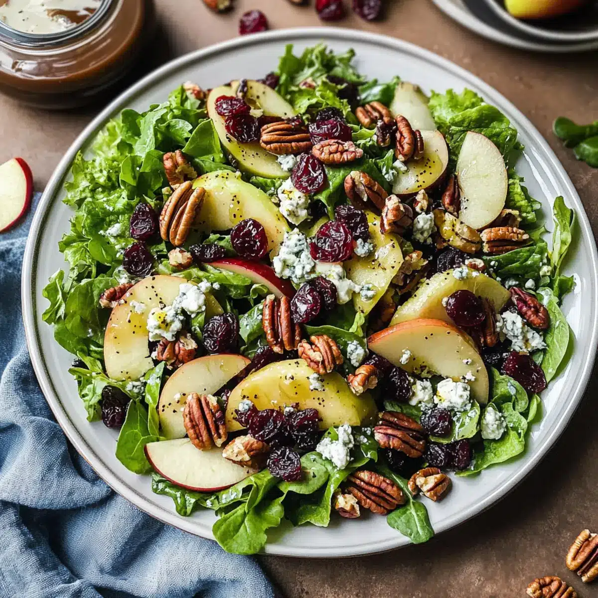Preparing the Apple Cranberry Salad with Maple Dijon Dressing in advance can save you precious time during busy weeknights or holiday gatherings! You can make the dressing up to 3 days ahead; simply store it in an airtight container in the refrigerator. For the salad, prepare and chop all the ingredients (baby greens, apples, cranberries, pecans, and cheese) up to 24 hours in advance and keep them stored separately in the fridge to maintain their crispness. Just remember to slice the apples right before serving to prevent browning. When you’re ready to serve, toss everything together with the dressing for a fresh and vibrant dish that’s just as delicious, but with far less hassle!
