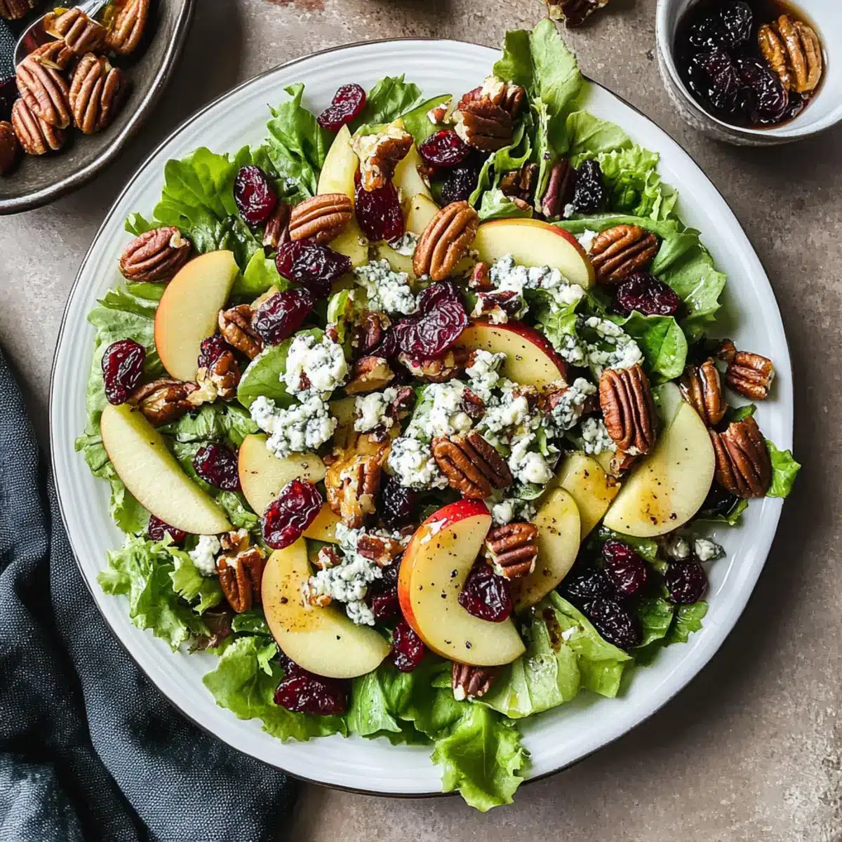 To keep your apple slices looking fresh and vibrant, add them to the salad just before serving. If you need to slice them in advance, toss them in a little lemon juice to slow down the oxidation process, which helps prevent browning.
