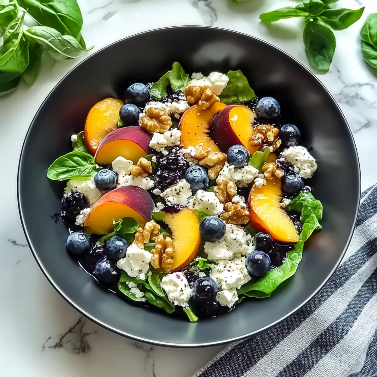 Absolutely! For the best results, look for peaches that are slightly soft to the touch, with a fragrant aroma and vibrant color. Avoid peaches with dark spots or blemishes. For blueberries, choose ones that are plump, firm, and shiny, with no signs of mold. Fresh ingredients ensure your Blueberry Peach Feta Salad is bursting with flavor!