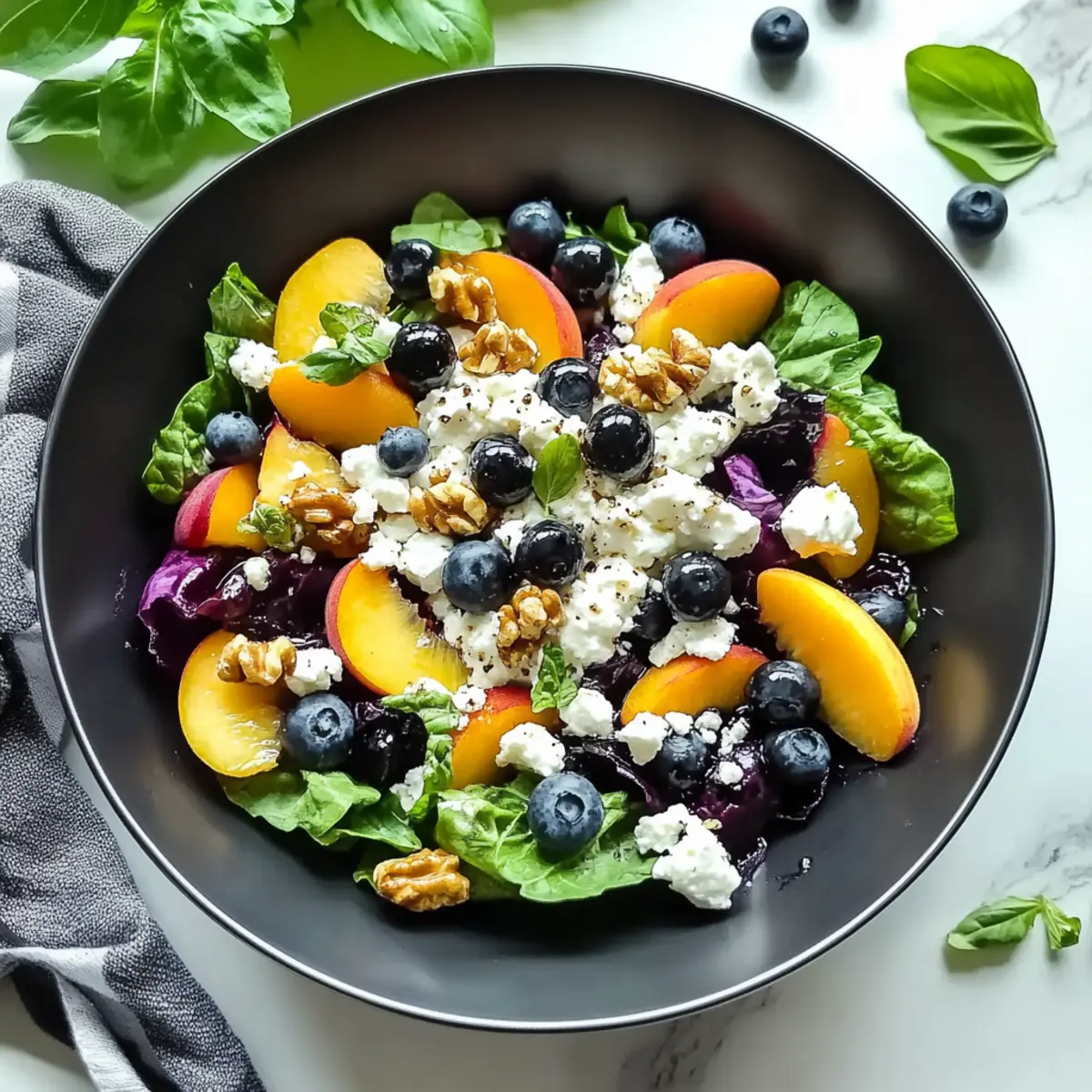 - Use Fresh Ingredients: Fresh blueberries and peaches greatly enhance the flavor and texture; avoid frozen fruits to prevent sogginess in your Blueberry Peach Feta Salad.