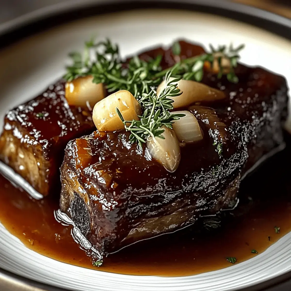 Imagine tender short ribs served over creamy polenta, savory mashed potatoes, or even a bed of roasted veggies—so many delicious options! You could also repurpose leftovers into short rib tacos for a fun twist. The hearty flavors of the dish pair beautifully with a bright green salad or roasted root vegetables for a lighter option.
