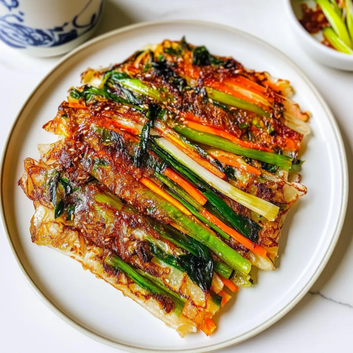 Crispy Pajeon Korean Vegetable Pancake with Rainbow Carrots