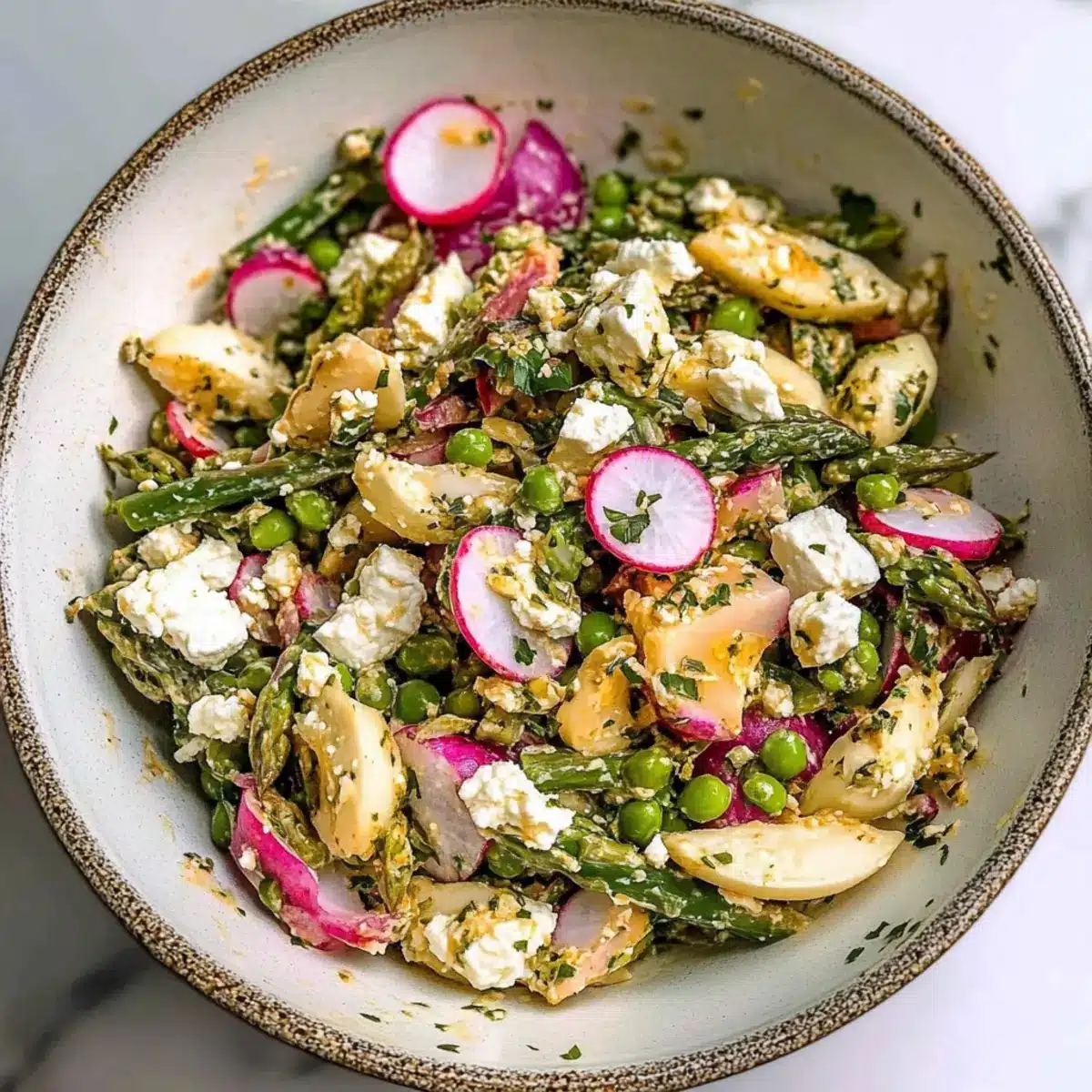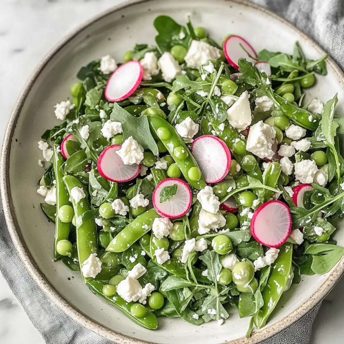 Fresh Sugar Snap Pea Salad with Radishes, Feta and Arugula