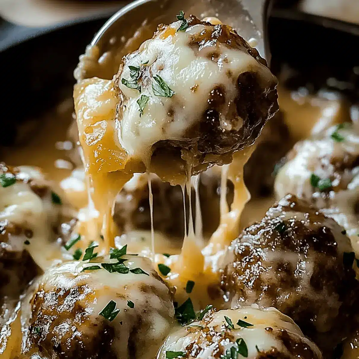 As the aroma of caramelized onions fills my kitchen, I can’t help but feel a rush of nostalgia. There’s something magical about transforming a simple ingredient into a heartwarming masterpiece, and that’s exactly what these Cheesy French Onion Meatballs deliver. This dish reimagines the classic French onion soup into a comforting entrée that’s both hearty and versatile. Whether you’re hosting friends for a cozy dinner or simply looking to indulge in a gourmet twist on comfort food, these meatballs bring happiness to the table. With minimal prep time and the ability to pair beautifully with just about any side—think crusty bread, creamy mashed potatoes, or a simple pasta—you’ll find them to be the perfect solution for any meal. What could be better than digging into this cheesy delight on a chilly evening? Let’s get started!