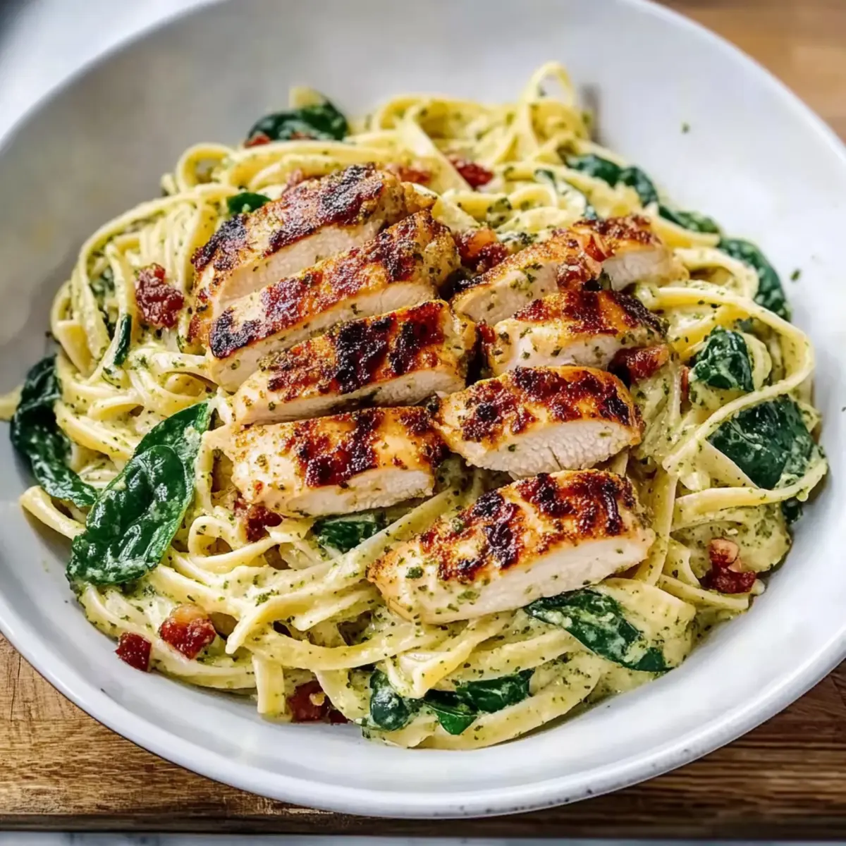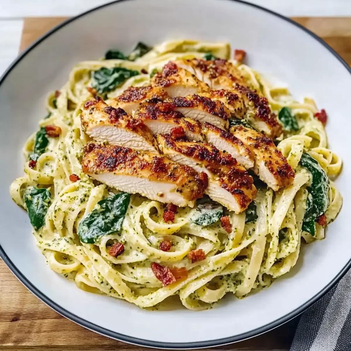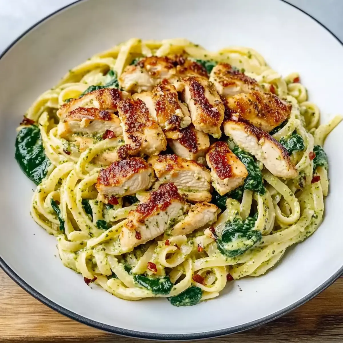 If you’re looking for a hearty meal that’s still classy enough for guests, consider pairing your Chicken Pesto Pasta with Spinach with a refreshing side salad or some crusty garlic bread to really round out the experience. After trying these variations, check out our Fiesta Lime Chicken with Avocado Salsa for another flavor-packed dinner idea!