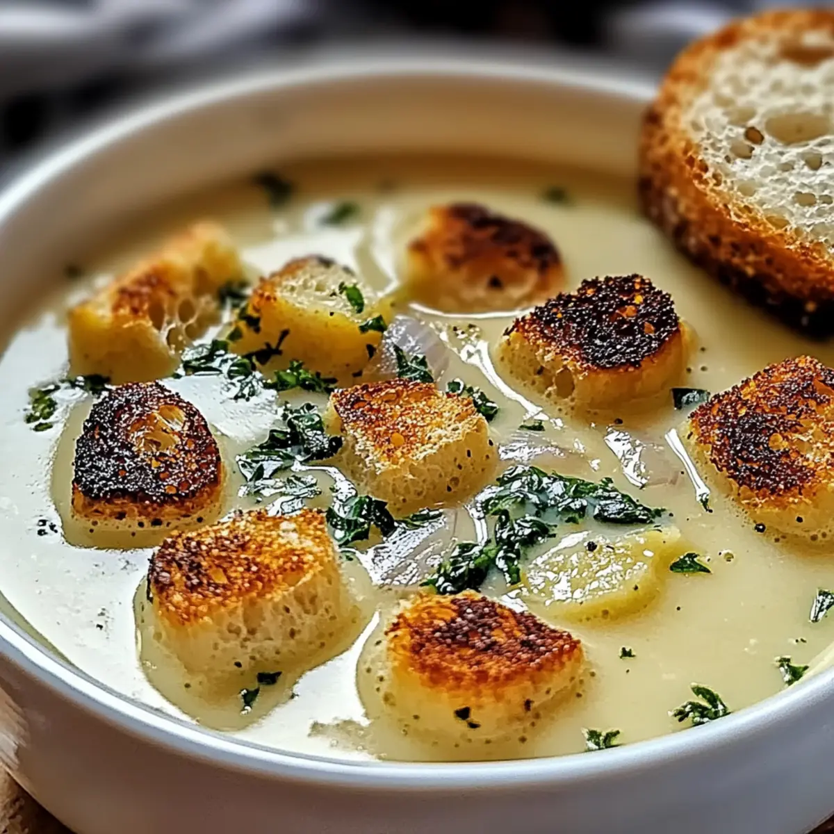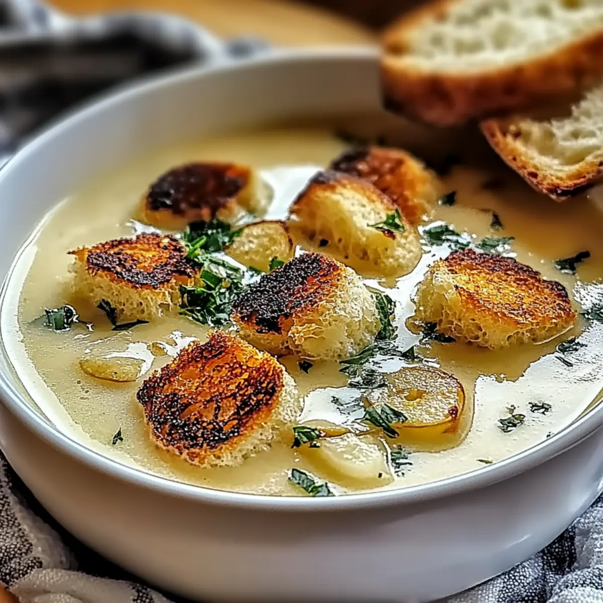 - Crusty Bread: This soup’s perfect companion; its crispy exterior and soft interior are ideal for dipping and soaking up all that delicious garlic goodness.
