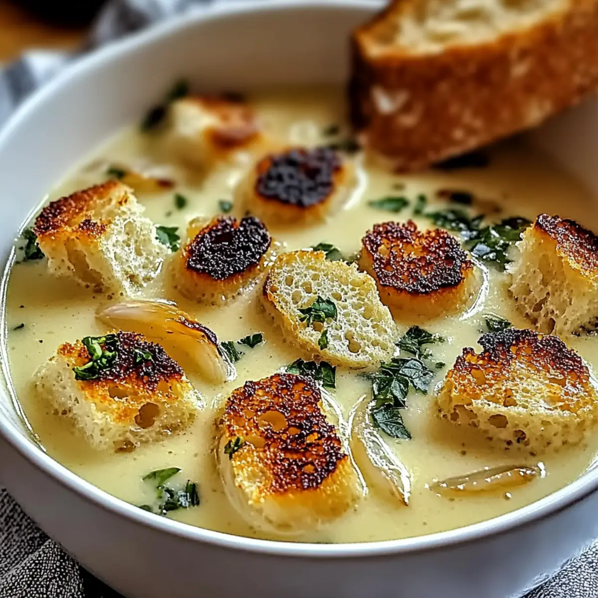 The warm, inviting aroma of roasted garlic fills the kitchen, immediately whisking me away to a cozy French café. That’s the magic of this Rustic Country French Garlic Soup – a comforting, immune-boosting bowl that’s not just a meal but a soulful hug in liquid form. With its creamy, velvety texture, this soup is a breeze to prepare, making it a perfect solution for busy weeknights or lazy weekends. Whether you add a sprinkle of fresh herbs or a drizzle of olive oil, it can easily be customized to suit your palate. Better yet, this dish packs wonderfully for make-ahead meals, meaning you can enjoy gourmet comfort food without the hassle. Are you ready to experience a rich, flavorful delight that brings the spirit of France right to your dinner table?