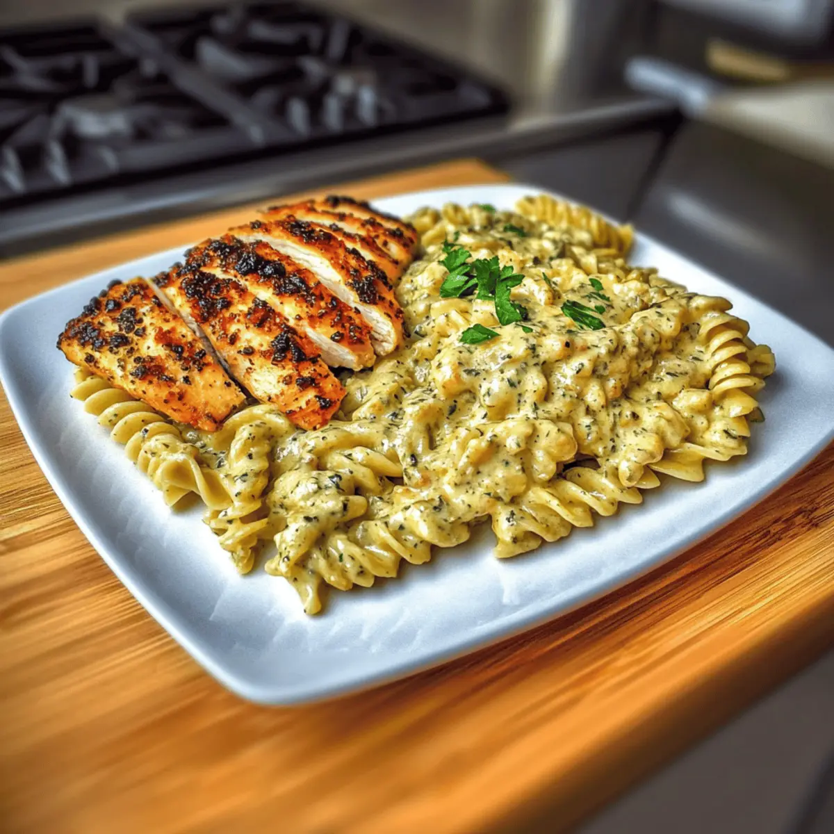 Rich, Creamy Texture: The velvety garlic Parmesan sauce envelops the chicken and pasta, delivering comfort in every bite.