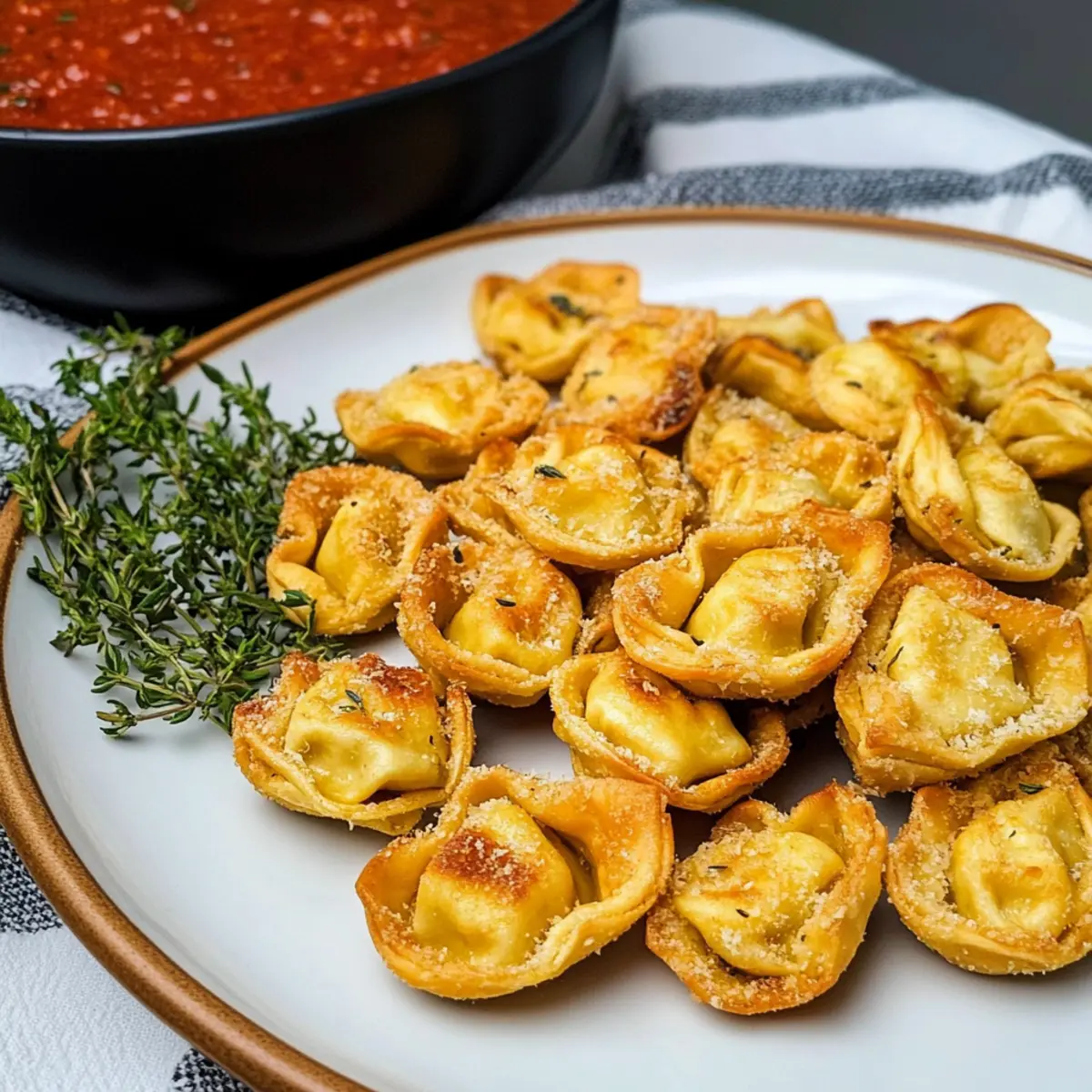 - Once all tortellini are cooked to a crispy finish, serve them immediately with marinara sauce or a creamy dipping sauce.