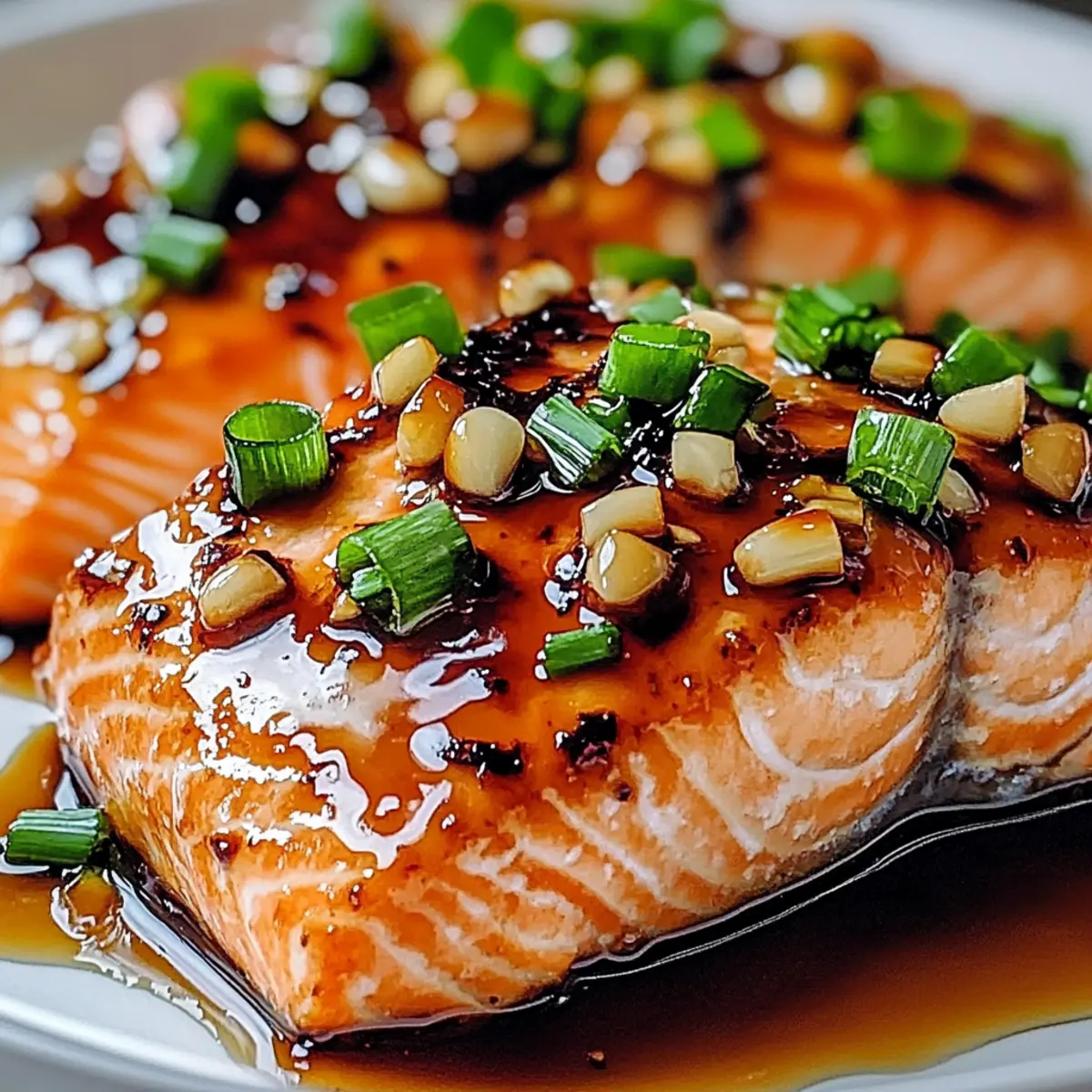 Once cooked, drizzle the remaining glaze over the salmon fillets, enhancing both flavor and presentation. Garnish with a sprinkle of chopped green onions to add a fresh burst of flavor and vibrant color. Your Crispy Honey Garlic Glazed Salmon is now ready to be plated, inviting everyone to enjoy this lovingly crafted dish!