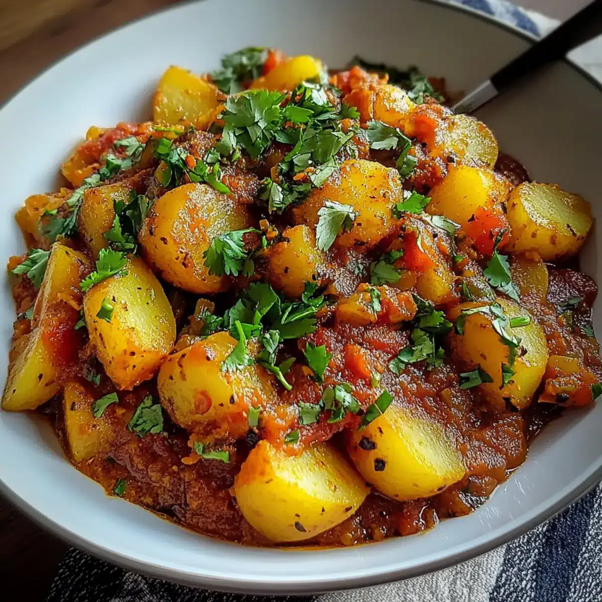As I stirred the aromatic spices in my kitchen, the golden-brown onions slowly transformed into a sweet caramelizing medley, inviting my taste buds to embark on a culinary journey to Persia. Today, I’m thrilled to share my take on Dopiazeh Aloo, a hearty Persian Potato Curry that warms both the soul and the stomach. This vegetarian delight is not only beginner-friendly but also perfect for cozy weeknight dinners or gatherings with friends and family. Imagine tender potatoes enveloped in a rich, spiced tomato base—each bite delivering satisfying comfort without the effort of complicated recipes. Whether you’re a seasoned cook or just starting out, you’ll appreciate the ease and wholesome goodness of this dish. Are you ready to fill your home with the irresistible scent of Persian cooking? Let’s savor this unique blend of flavors together!
