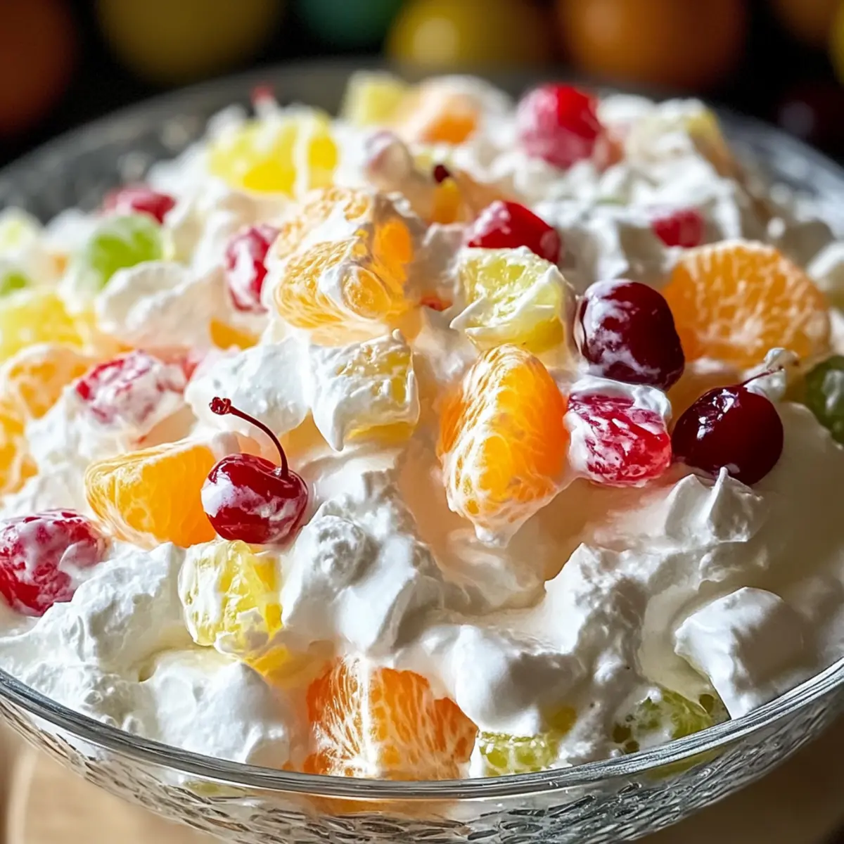 Absolutely! When selecting fruits, look for vibrant colors and firm textures. For mandarin oranges, choose those without dark spots or soft spots. Fresh pineapples should be slightly fragrant and yield gently to pressure. For cherries, opt for those with a deep red color and a glossy skin. Freshness is key to ensuring your ambrosia has that delightful burst of flavor.