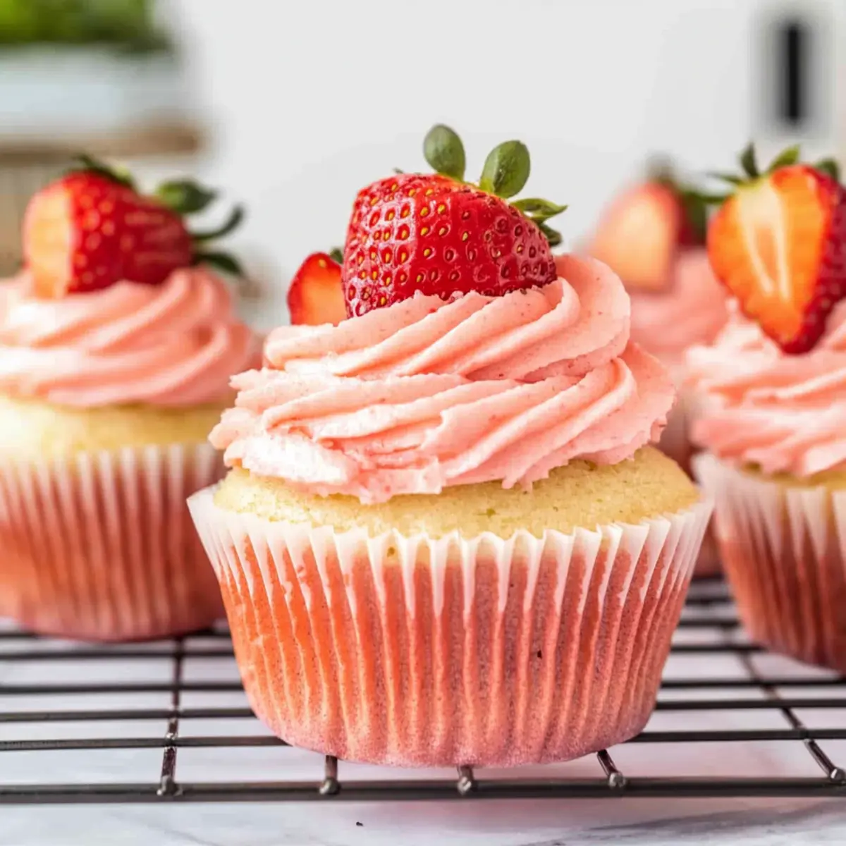 Freezing: These Fresh Strawberry Cupcakes can be frozen for up to 3 months. Wrap them individually in plastic wrap, then place in a freezer-safe container.