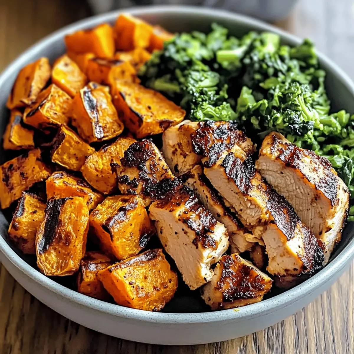 As I stood by the grill, the tantalizing aroma of smoky chicken blended with the sweet scent of caramelizing sweet potatoes, transporting me instantly to a summer cookout. This Grilled Chicken & Sweet Potato Bowl not only makes for an impressive weeknight dinner but also bursts with nutritious ingredients, ensuring everyone in my family leaves the table satisfied. Wholesome and visually appealing, it allows for endless customization—whether swapping proteins or mixing in your favorite greens. In just a short while, you’ll be enjoying a delicious meal that perfectly balances flavor and health. Curious about how to make your own? Let’s dive into the recipe!
