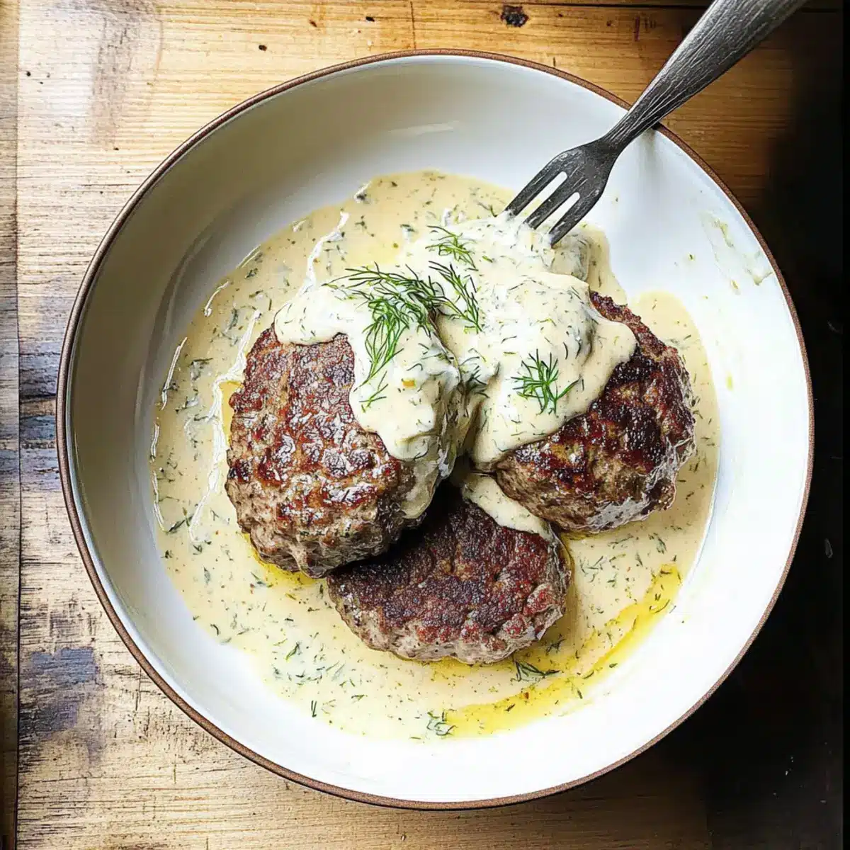 Savory Hamburger Steaks in Creamy Dill Sauce for Quick Comfort