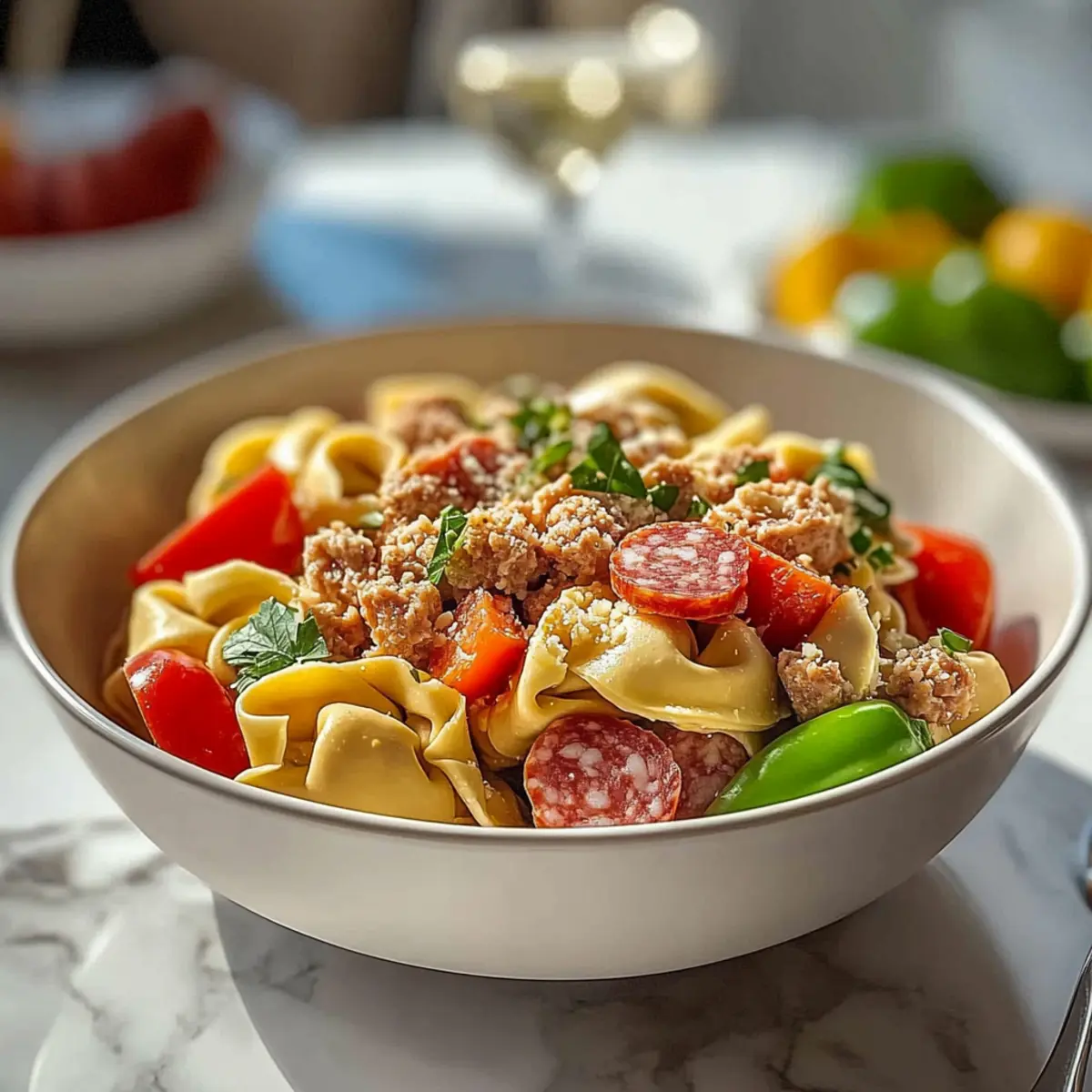 Colorful and Crunchy: Enjoy the vibrant pop of fresh vegetables combined with tender tortellini. Each bite offers a delightful contrast in both texture and taste.