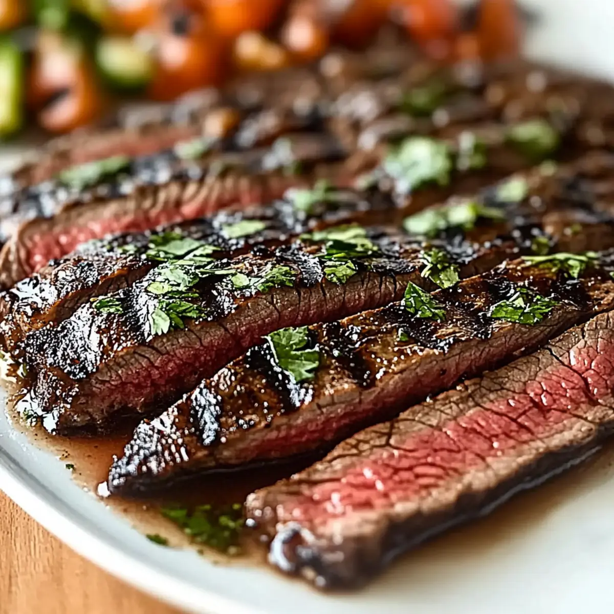 After grilling, remove the flank steak from the grill and let it rest on a cutting board for 10 minutes. This resting time allows the juices to redistribute throughout the meat, ensuring your marinated flank steak remains juicy. Once rested, slice the steak thinly against the grain to enhance tenderness, revealing the stunning juicy interior that’s bursting with flavor.