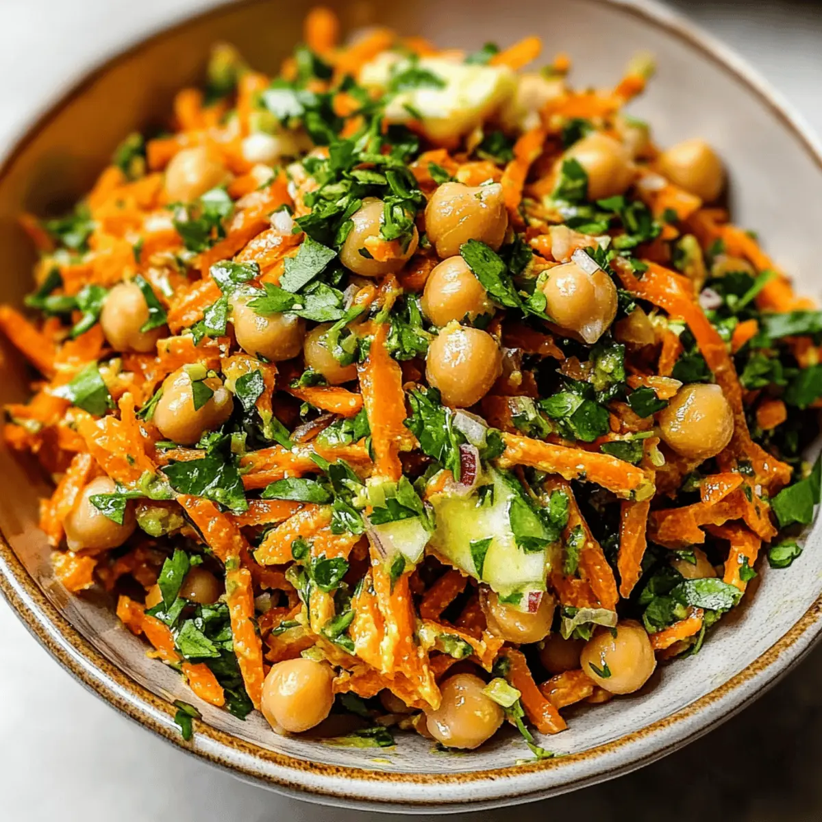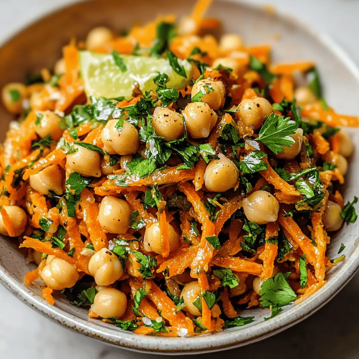 Vibrant Colors: The bright orange of freshly grated carrots and the golden hues of chickpeas make this salad a feast for the eyes!