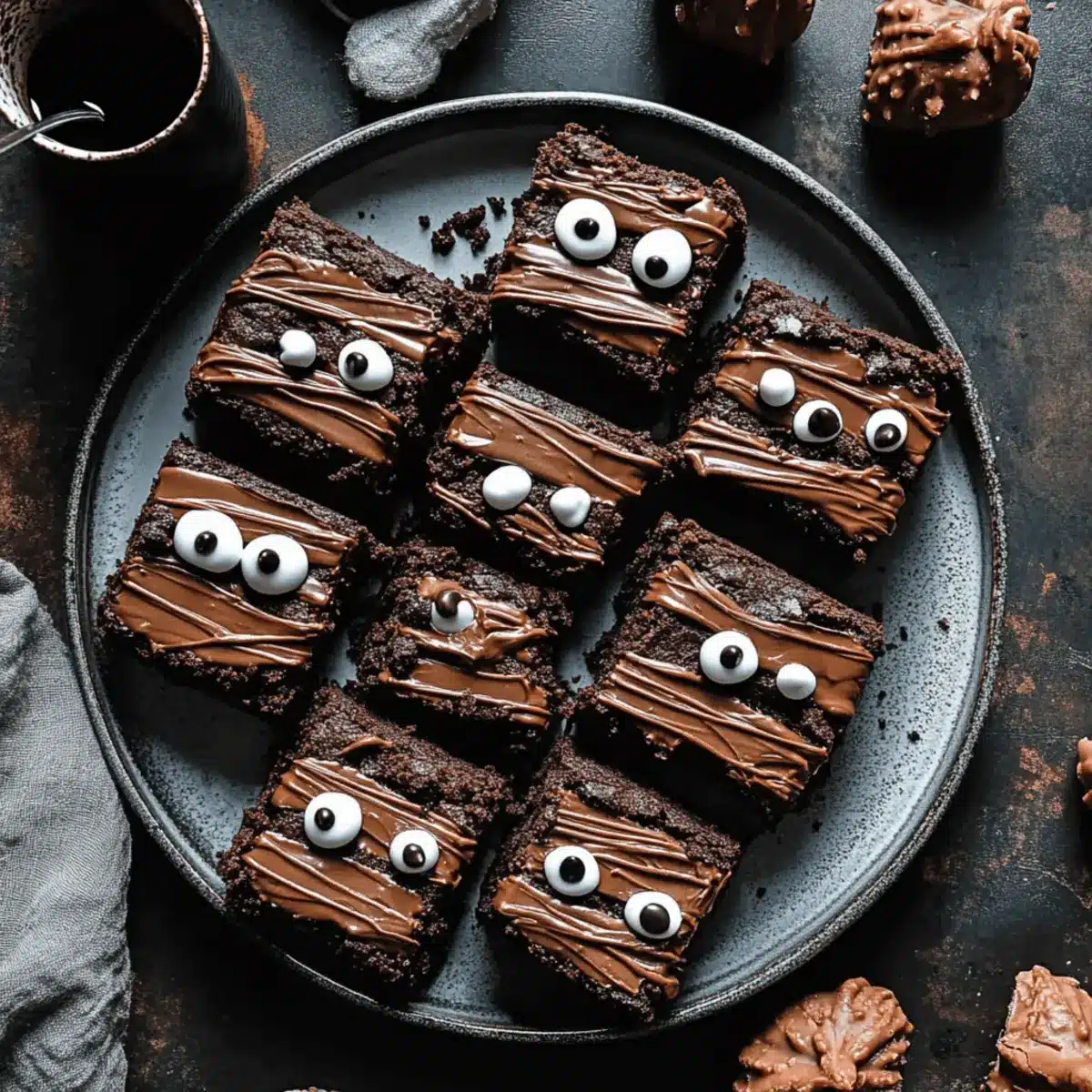- Mummy Hot Chocolate: For a cozy pairing, serve a cup of adult hot chocolate topped with whipped cream and festive marshmallows—perfect for sipping alongside the brownies!
