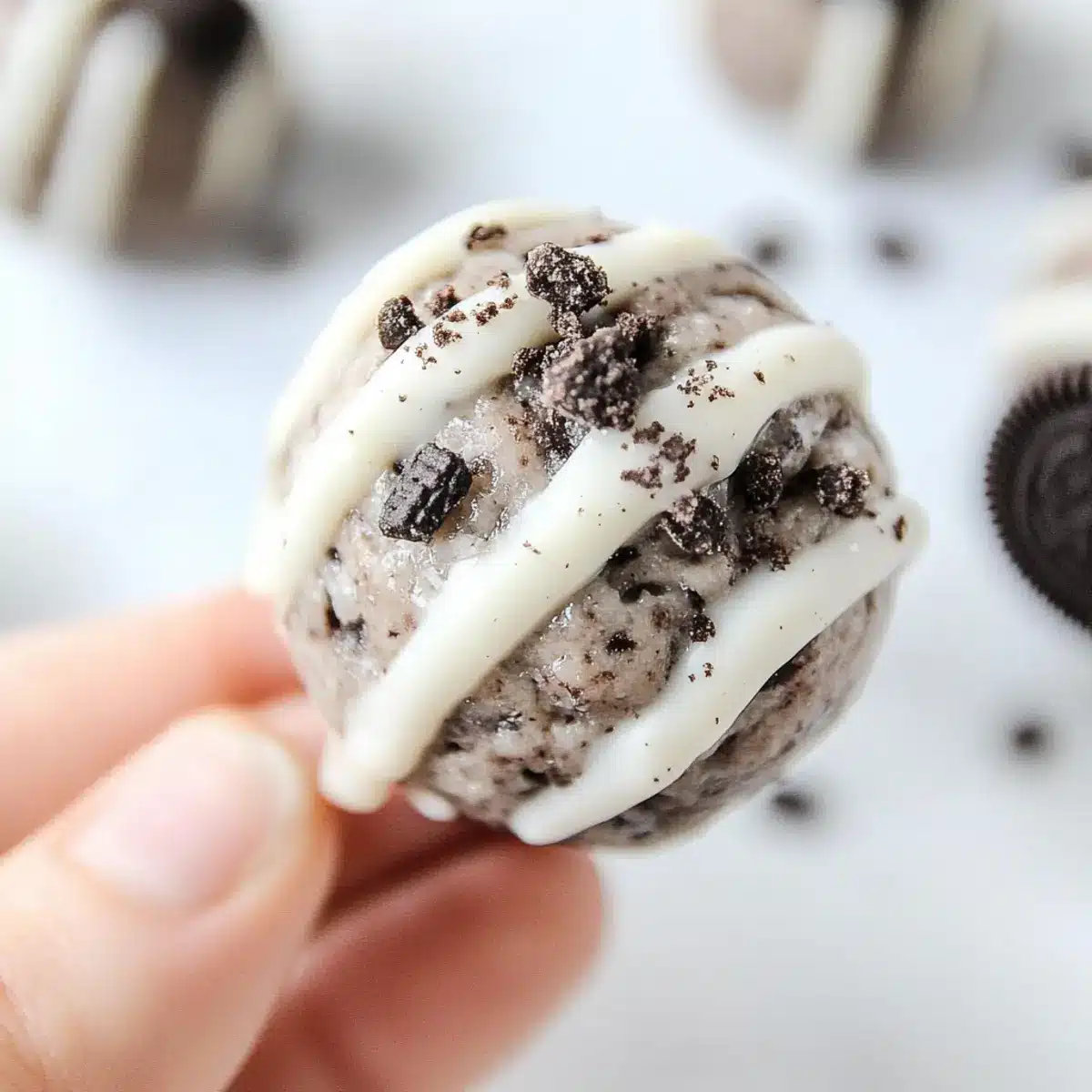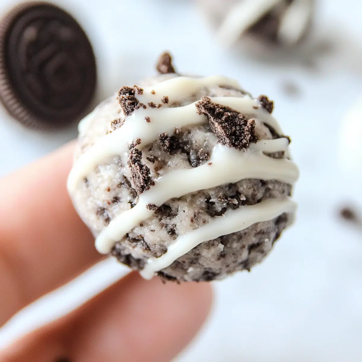 These Creamy Oreo Protein Balls are a fantastic choice for meal prep! You can mix the ingredients and form the balls up to 24 hours ahead. Simply refrigerate them in an airtight container to maintain their texture and freshness. If you’d like, you can also prepare the mixture and store it in the fridge for up to 3 days before rolling into balls. To ensure they are just as delicious when you’re ready to serve, roll them just before enjoying for the freshest taste and texture. For an elegant finish, drizzle the white chocolate topping right before serving to keep it looking and tasting amazing!