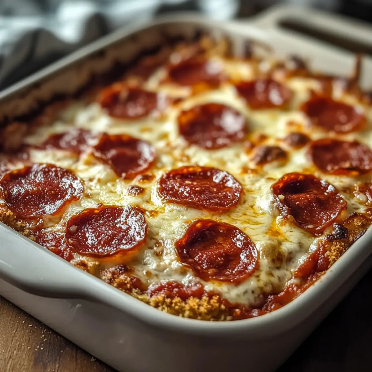 Once baked, remove the dish from the oven and let it cool for about 10 minutes. This cooling period allows the layers to set for easier slicing. After slicing, serve warm and watch as everyone digs into this comforting, flavorful dish that’s a lighter take on traditional pizza.
