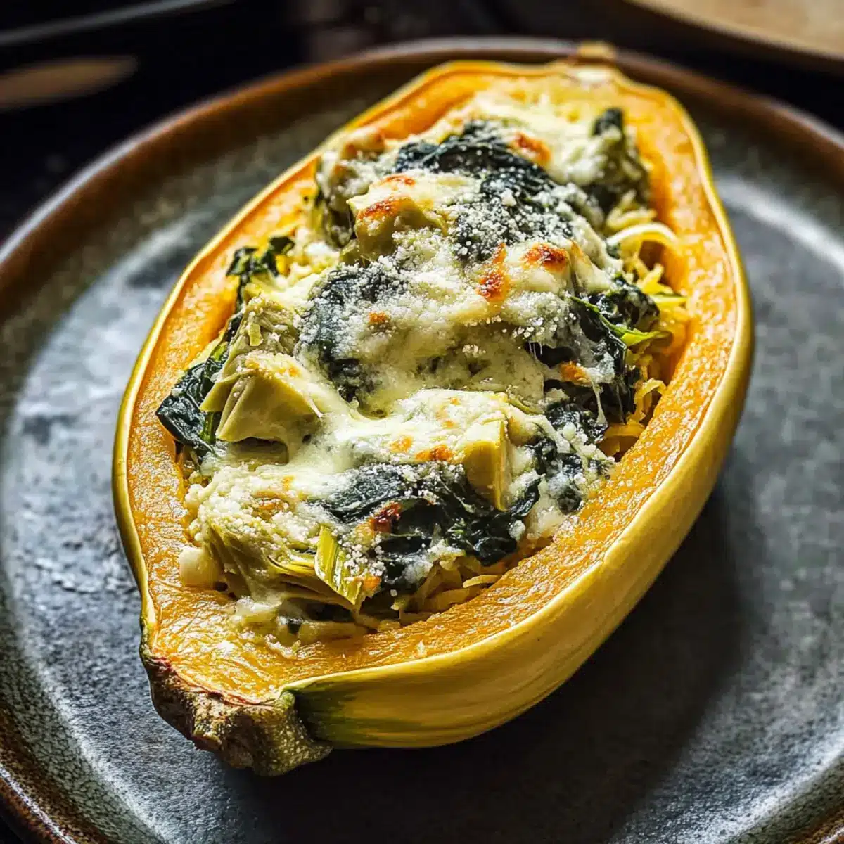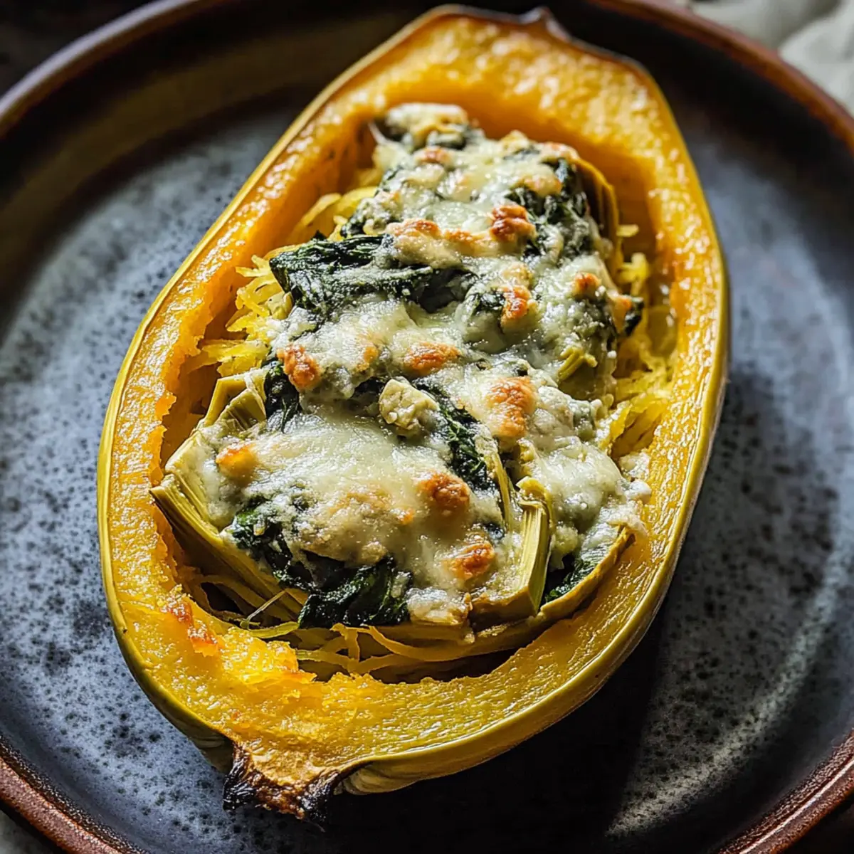 Spinach and Artichoke Stuffed Spaghetti Squash Delight