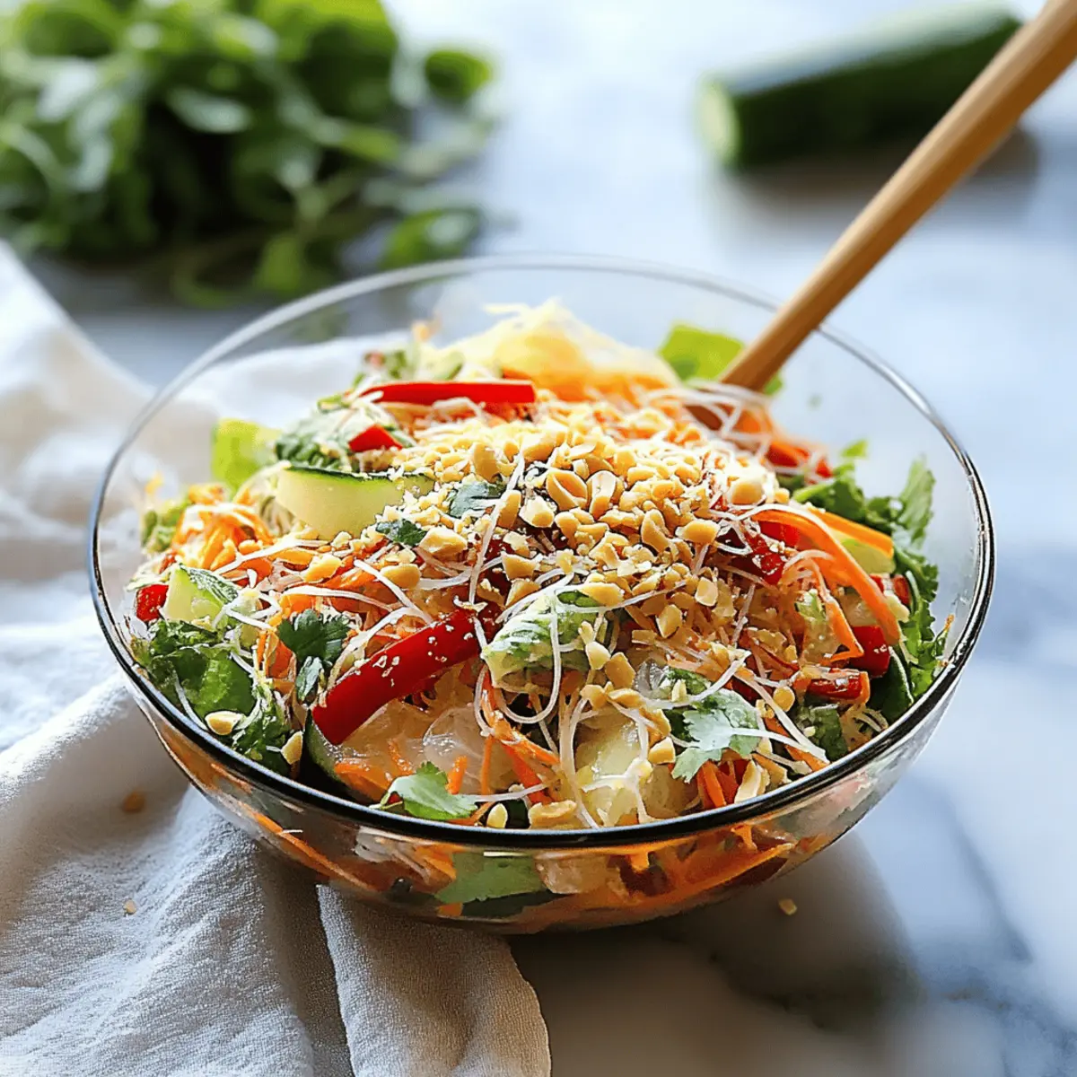 - Cabbage Base: Swap the rice vermicelli noodles with finely shredded Napa cabbage for extra crunch. This variation not only enhances texture but also adds a fun twist to the original recipe!