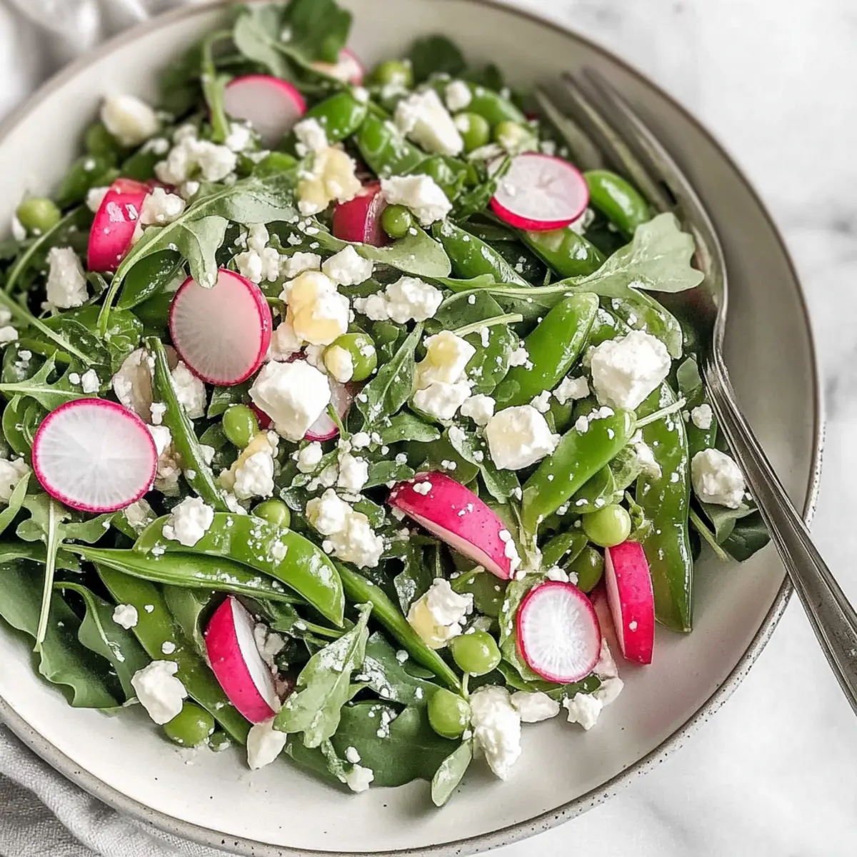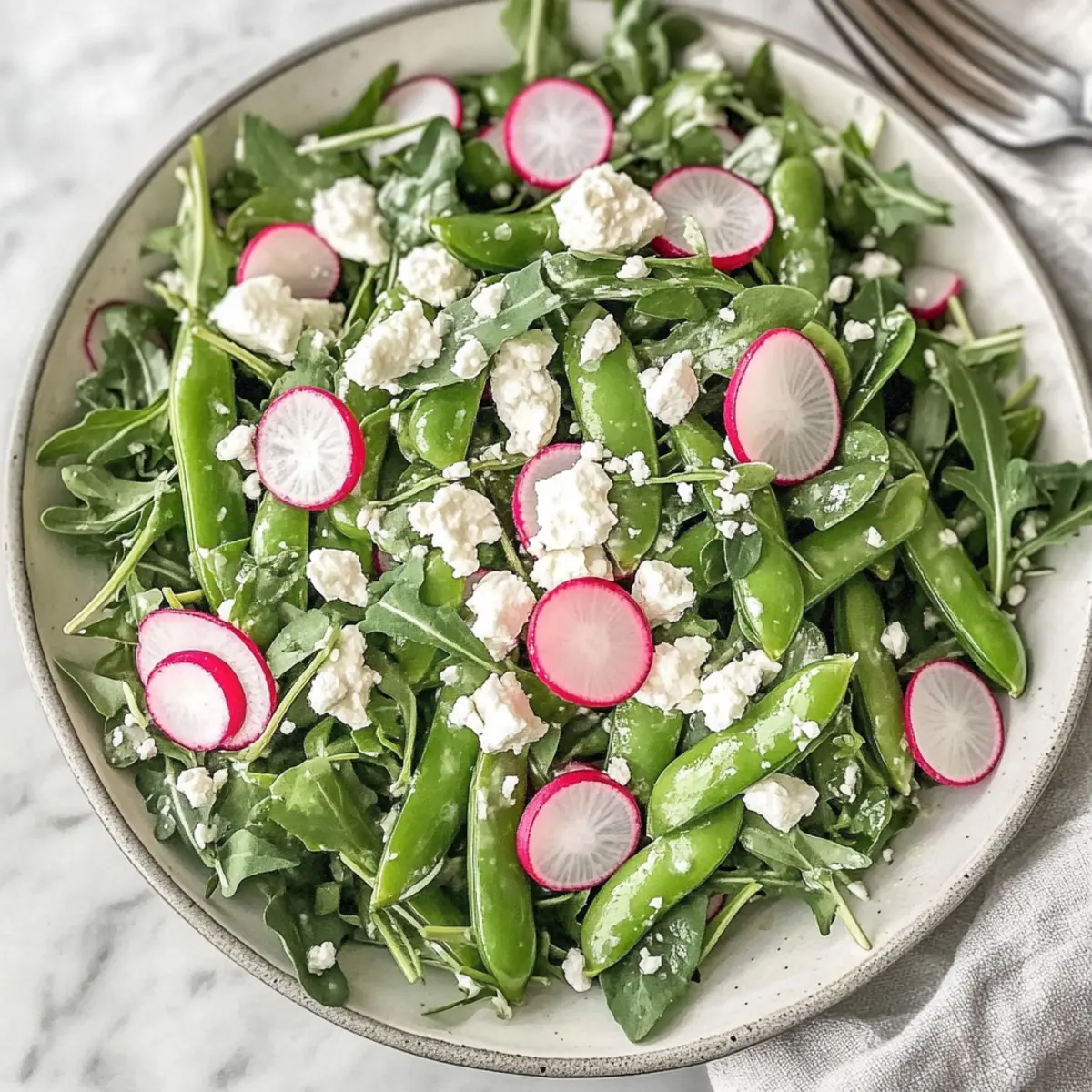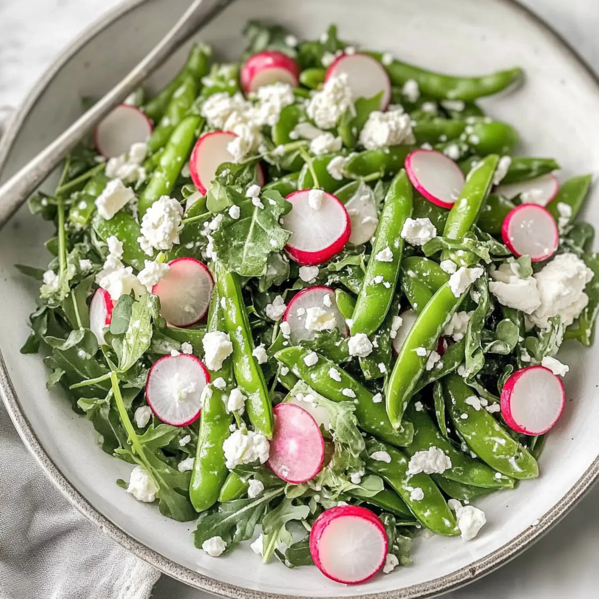 Fresh Sugar Snap Pea Salad with Radishes, Feta and Arugula