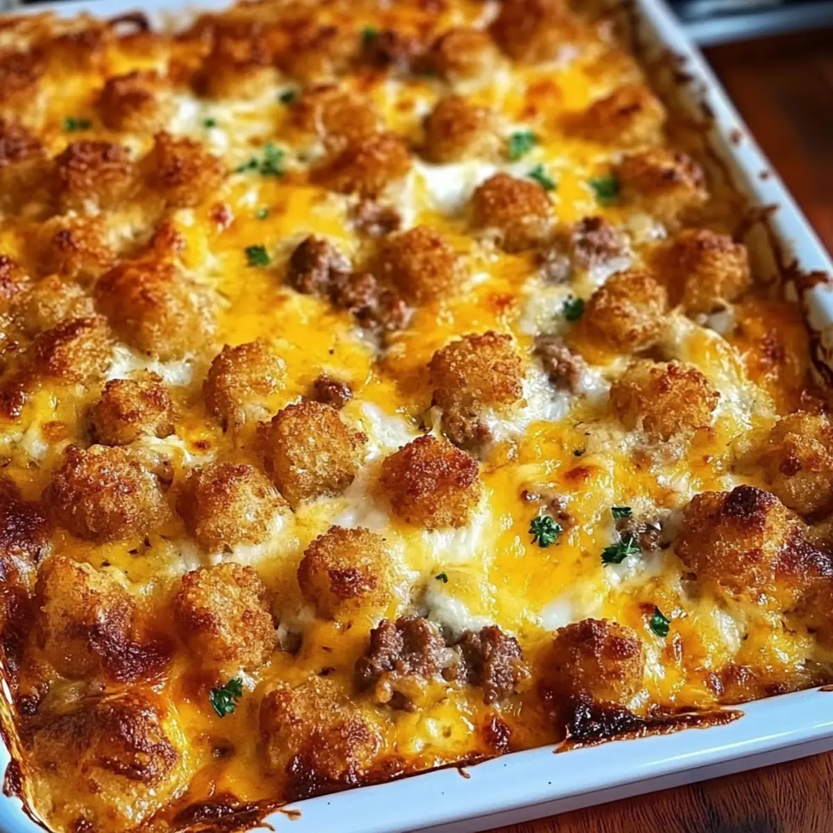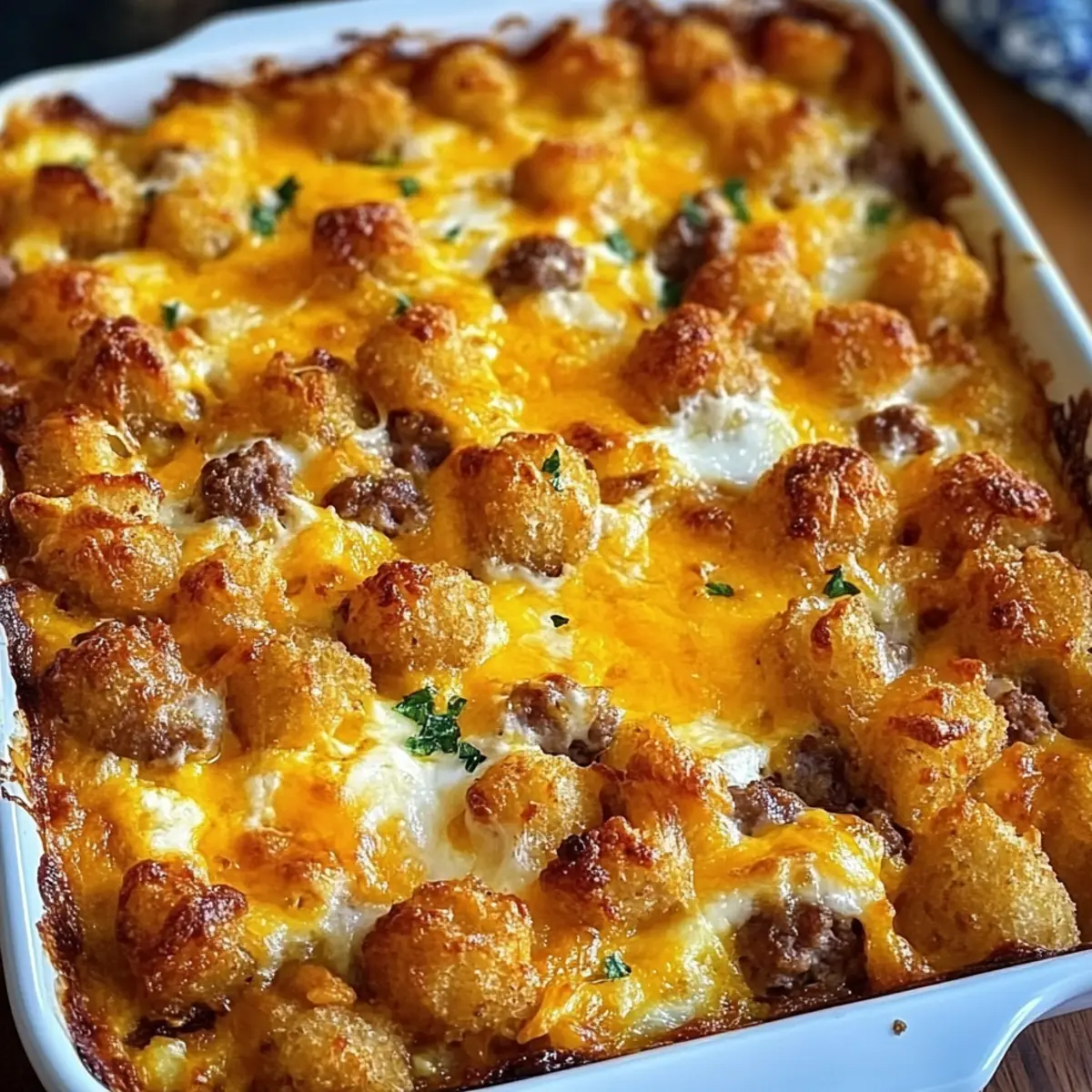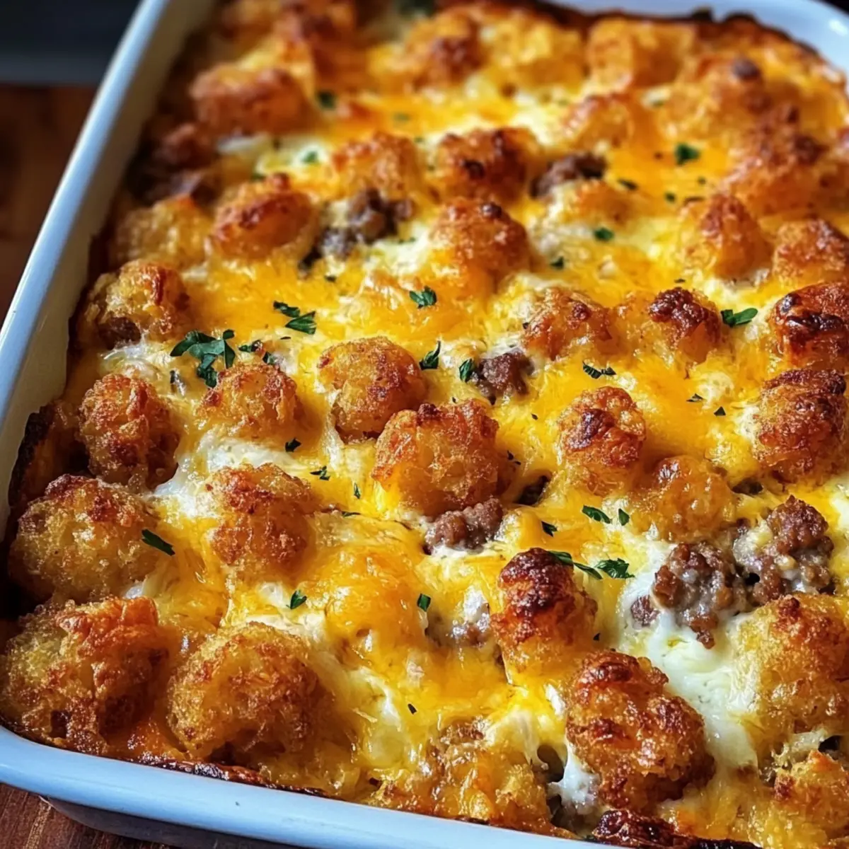 Comforting Flavors: The irresistible blend of savory sausage, gooey cheese, and crispy tater tots creates a dish that warms the soul, perfect for any meal.
