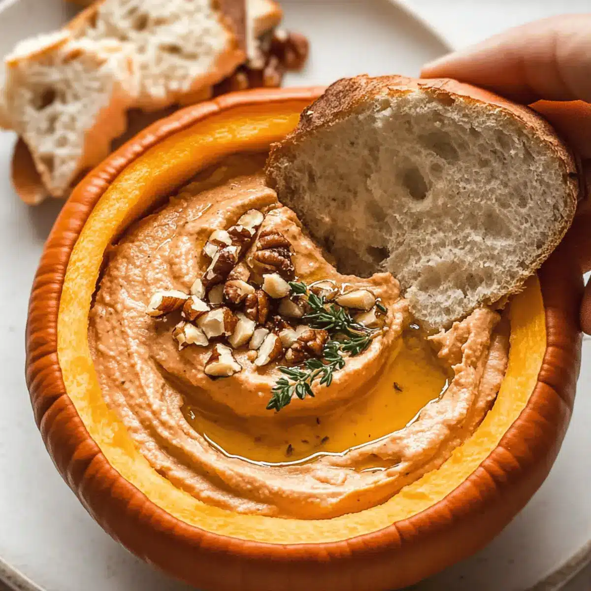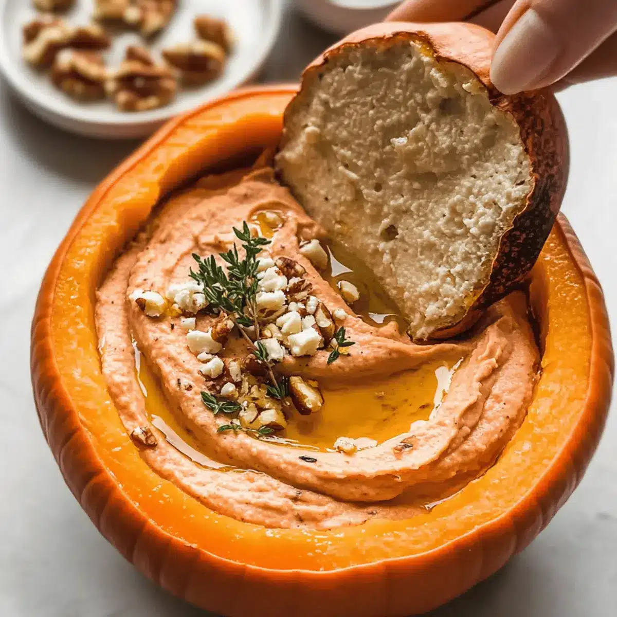 - Transfer the dip to a serving dish or spoon it into a hollowed mini pumpkin for a festive touch.