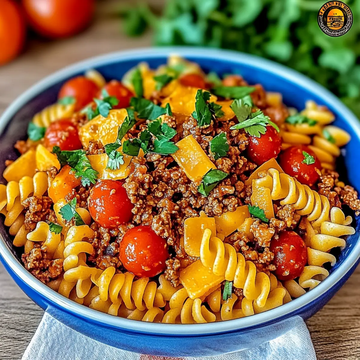Preparing the Zesty Taco Pasta Salad in advance is a fantastic way to save time and ensure a delicious meal awaits you on busy weeknights! You can cook the rotini pasta and ground beef up to 24 hours ahead. Simply store them separately in airtight containers to maintain their textures and flavors. The salad can be fully assembled up to 3 days in advance, just be sure to cover it tightly and refrigerate to keep everything fresh. To maintain that delightful crunch, add the crushed Nacho Cheese Doritos only right before serving. When you’re ready to enjoy, give the salad a gentle toss to blend the flavors beautifully. This thoughtful prep makes it easy to serve a crowd-pleasing dish with minimal last-minute effort!